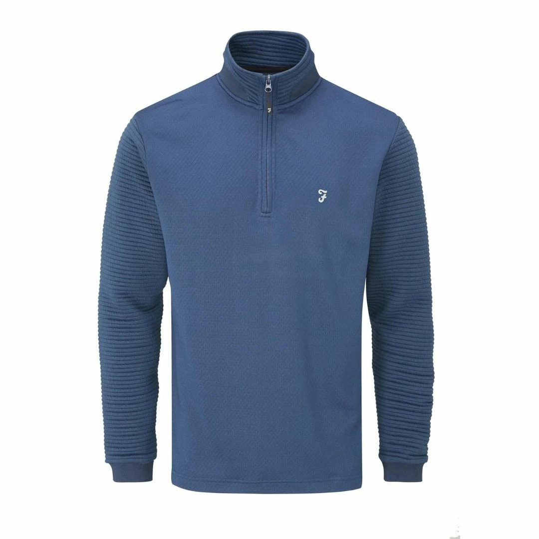 The Farah Warren 1/4 zip will be the ideal garment to wear on those cooler mornings and evenings out and about the golf course. A technical jacquard knit body and rib sleeves give a great look whilst offering maximum heat retention through the thermal properties. It is soft to the touch and highly breathable, making it a great choice for all-year wear.