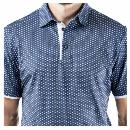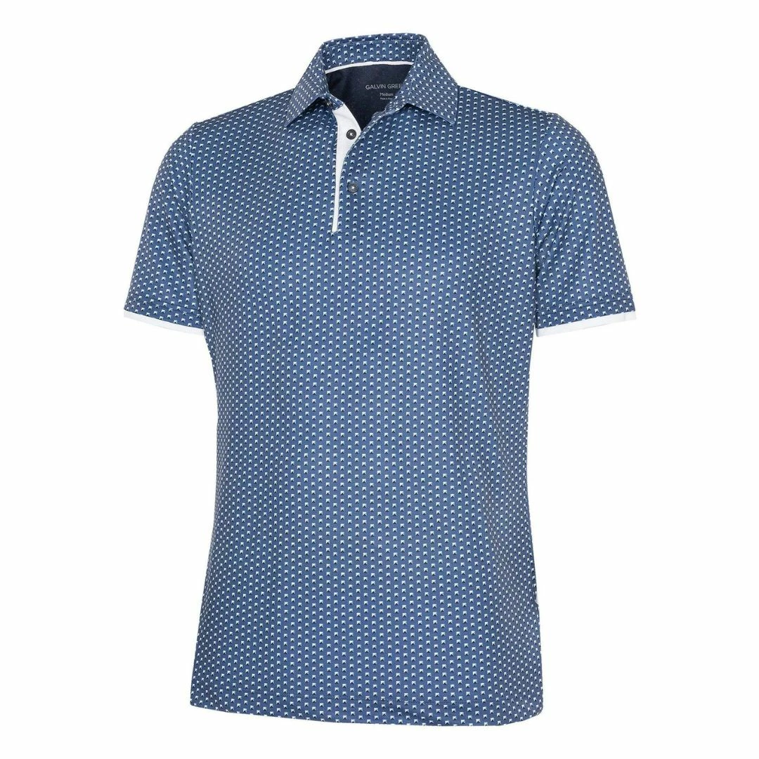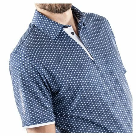 Mark is a printed men’s golf shirt featuring an allover stud pattern that’s designed to look metallic. The Galvin Green VENTIL8™ PLUS shirt range has a built-in UV factor of 20+ to keep you both comfortable and protected from the sun. Lightweight, extremely breathable, and quick dry, this is a high tech shirt that’s comfortable and easy to wear.