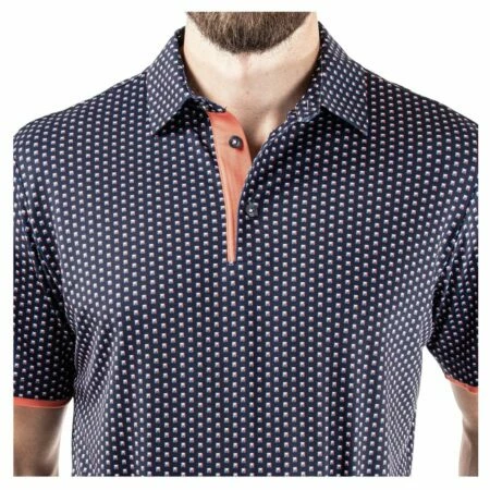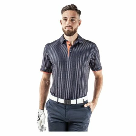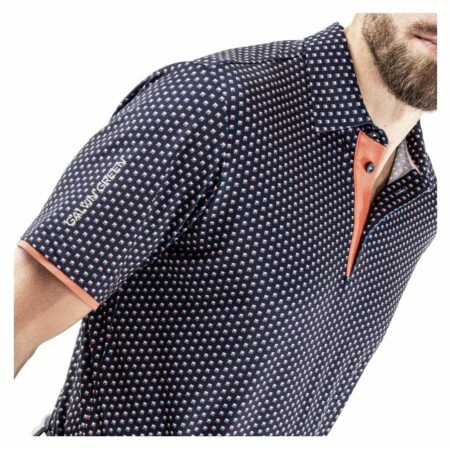 Mark is a printed men’s golf shirt featuring an allover stud pattern that’s designed to look metallic. The Galvin Green VENTIL8™ PLUS shirt range has a built-in UV factor of 20+ to keep you both comfortable and protected from the sun. Lightweight, extremely breathable, and quick dry, this is a high tech shirt that’s comfortable and easy to wear.