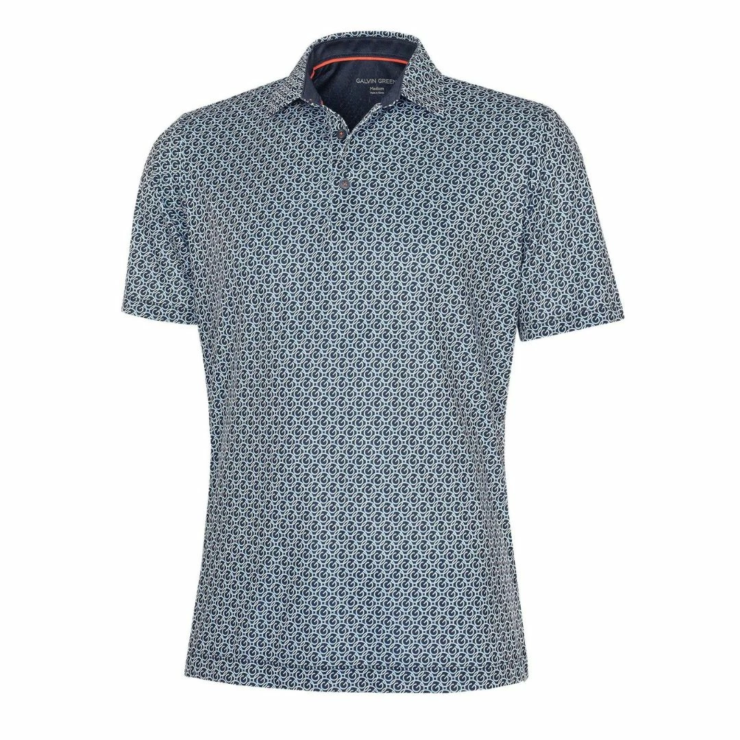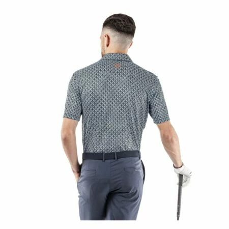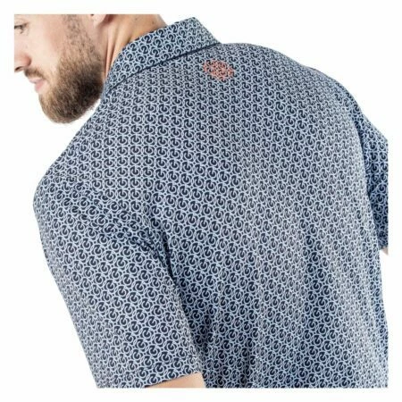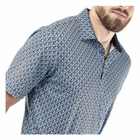 This fully printed polo shirt has an allover G logo chain pattern and is made from Galvin Green’s high tech VENTIL8™ PLUS fabric. Extremely breathable and quick dry, this material is ideal for golf shirts, ensuring you stay cool and dry while you play.