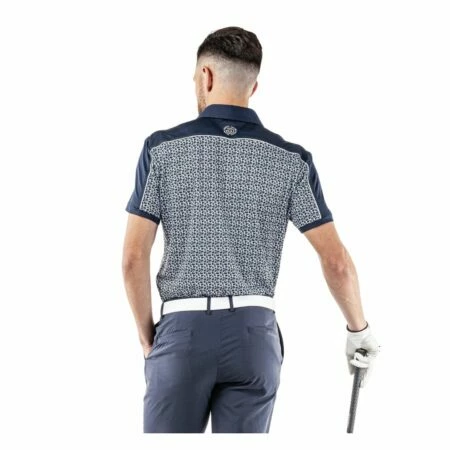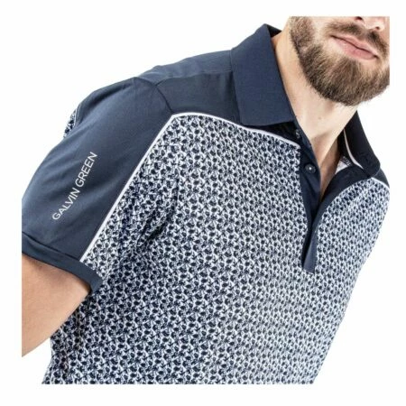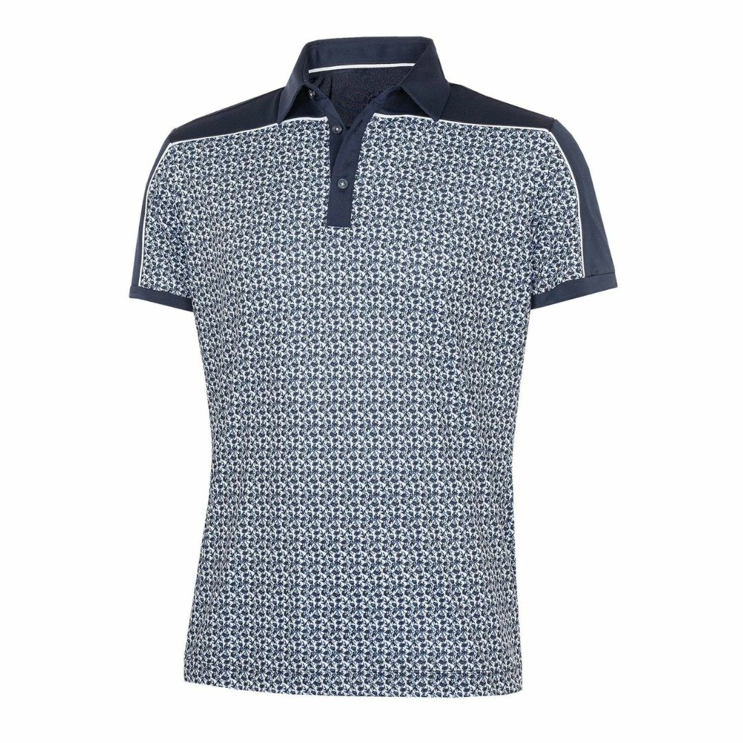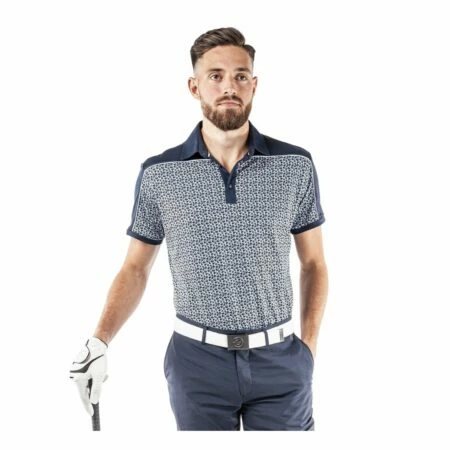 A lightweight men’s polo, Millard is a cut & sewn shirt with a floral print body and solid shoulders and sleeves. Made from an extremely breathable, lightweight, quick dry fabric, this shirt is ideal for warm days on the golf course. UV protection of 20+ provides extra cover on hot days.