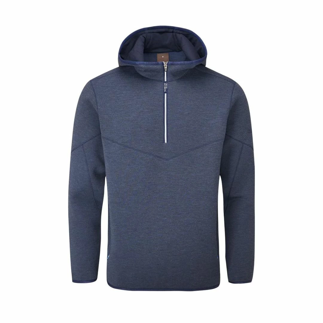 The DAYNE quarter zip hooded pullover is a great option for golfers looking for a modern garment that offers warmth, comfort, and freedom of movement. The marl effect fabric gives a stylish finish and is complemented with branded zips and an oversize tonal Oscar Jacobson logo to the central hooded panel.